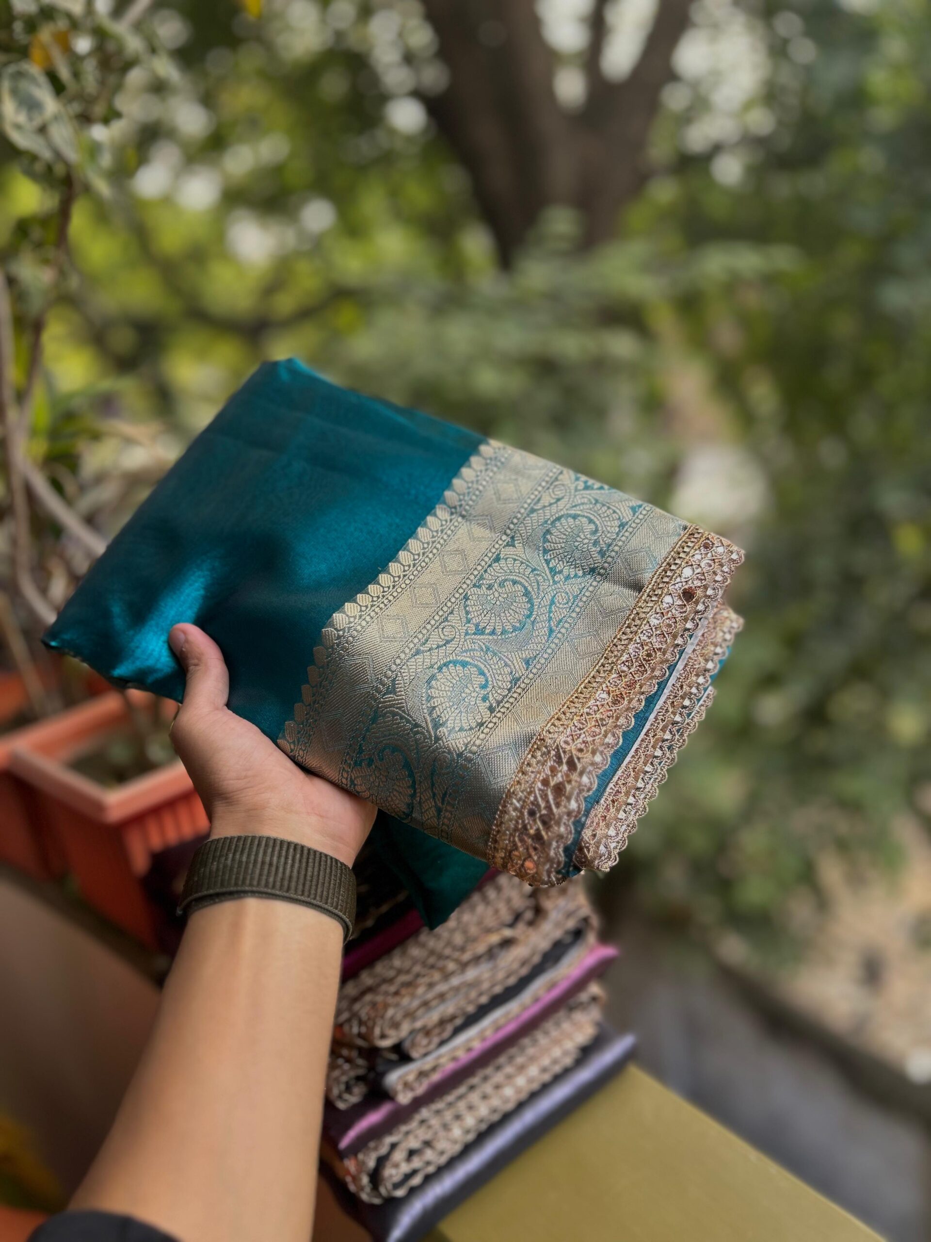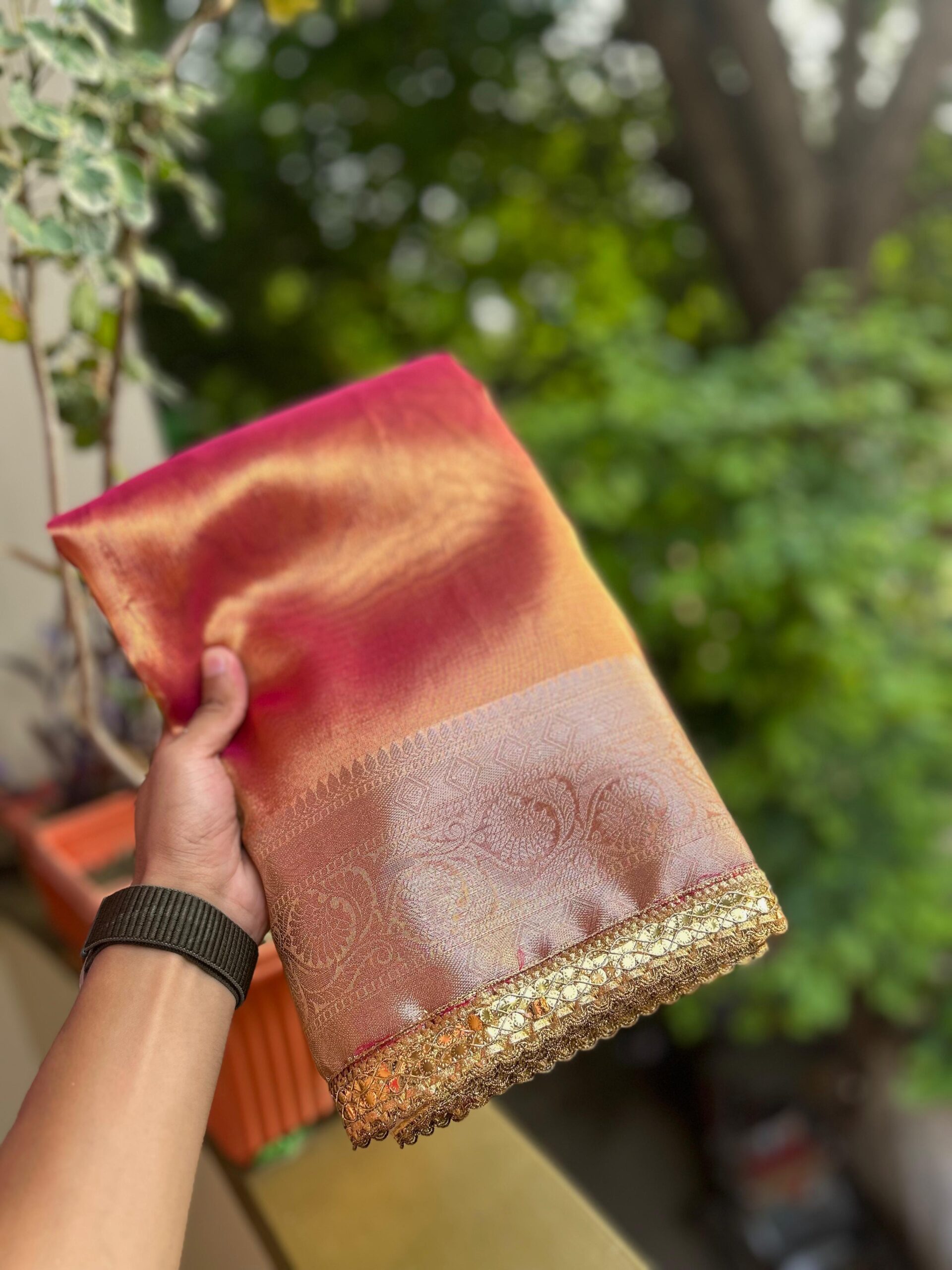Banarasi Woven SOFT ZARI TISSUE SILK SAREE WITH BEAUTIFUL LACE ATTACHED.