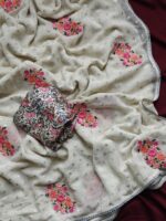 🥻👉🏻 Premium german chiffon sarees with intricate floral thread embroidery , beautiful silver lace, intricate pattern and silver zari butti all over.