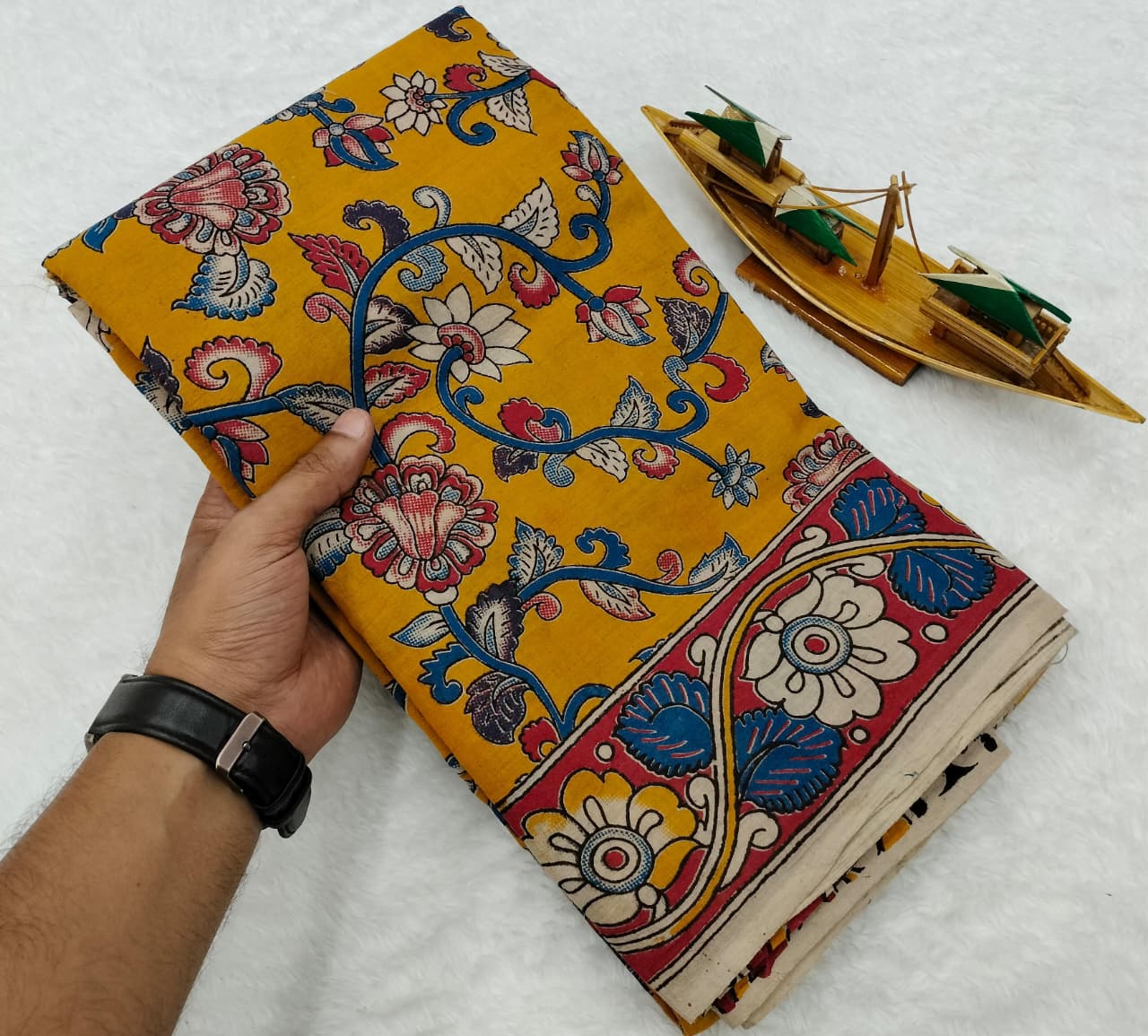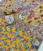 FABRIC– 100% ORIGINAL HAND PAINTED PURE COTTON KALAMKARI SAREES WITH BEAUTIFUL DESIGNER GRAND PALLU.